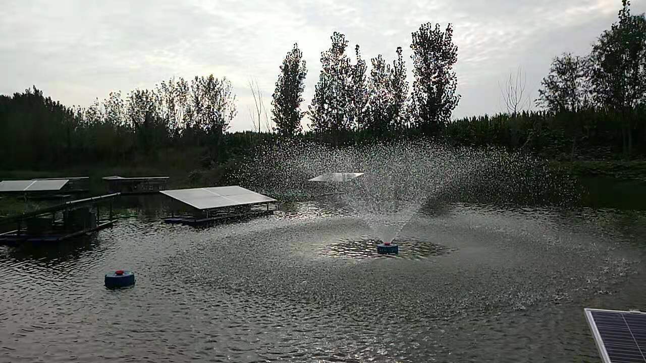 山東菏澤10臺太陽能噴泉曝氣機(jī)安裝現(xiàn)場