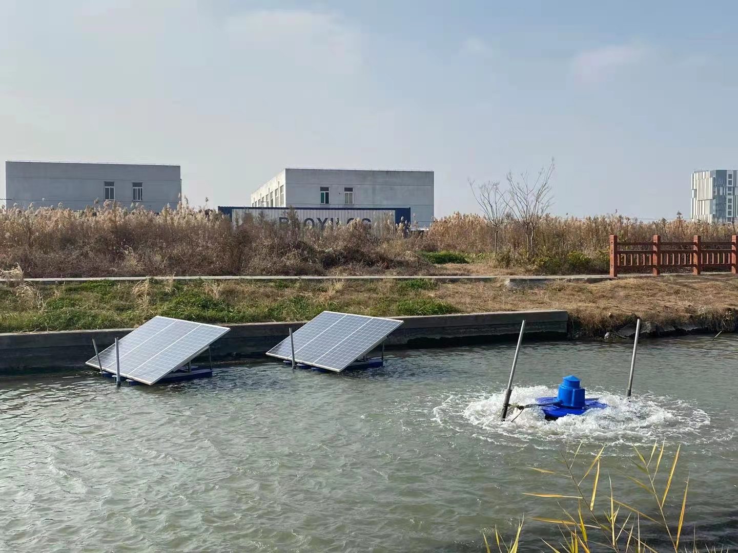 上海嘉定區(qū)5臺太陽能涌浪安裝現(xiàn)場--綠博斯增氧機(jī)